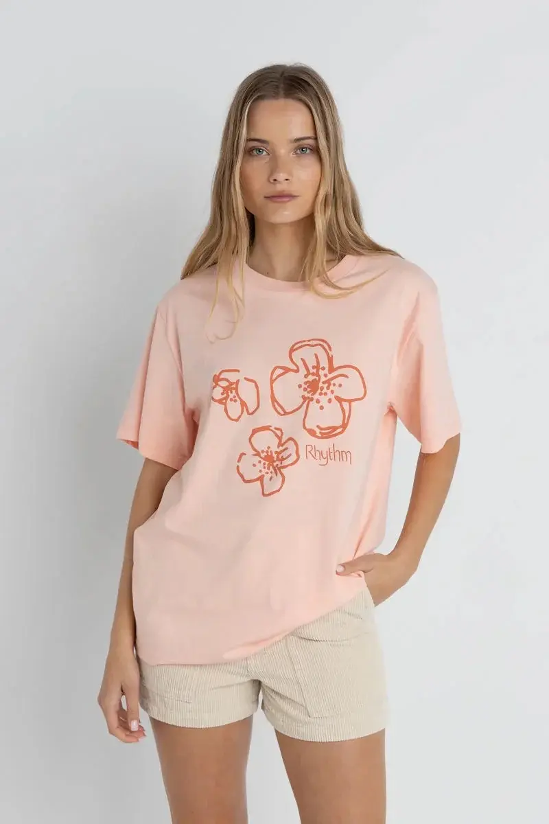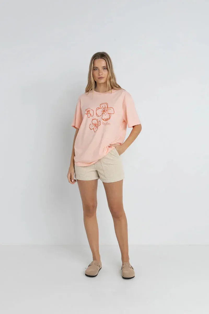 • The Paradise Floral Oversized Tee in Pink combines lighthearted flair with a modern cut. Made from 100% cotton, it features an oversized relaxed silhouette. With a custom hand-drawn Rhythm print in water-based ink, it perfectly captures a life by the coas