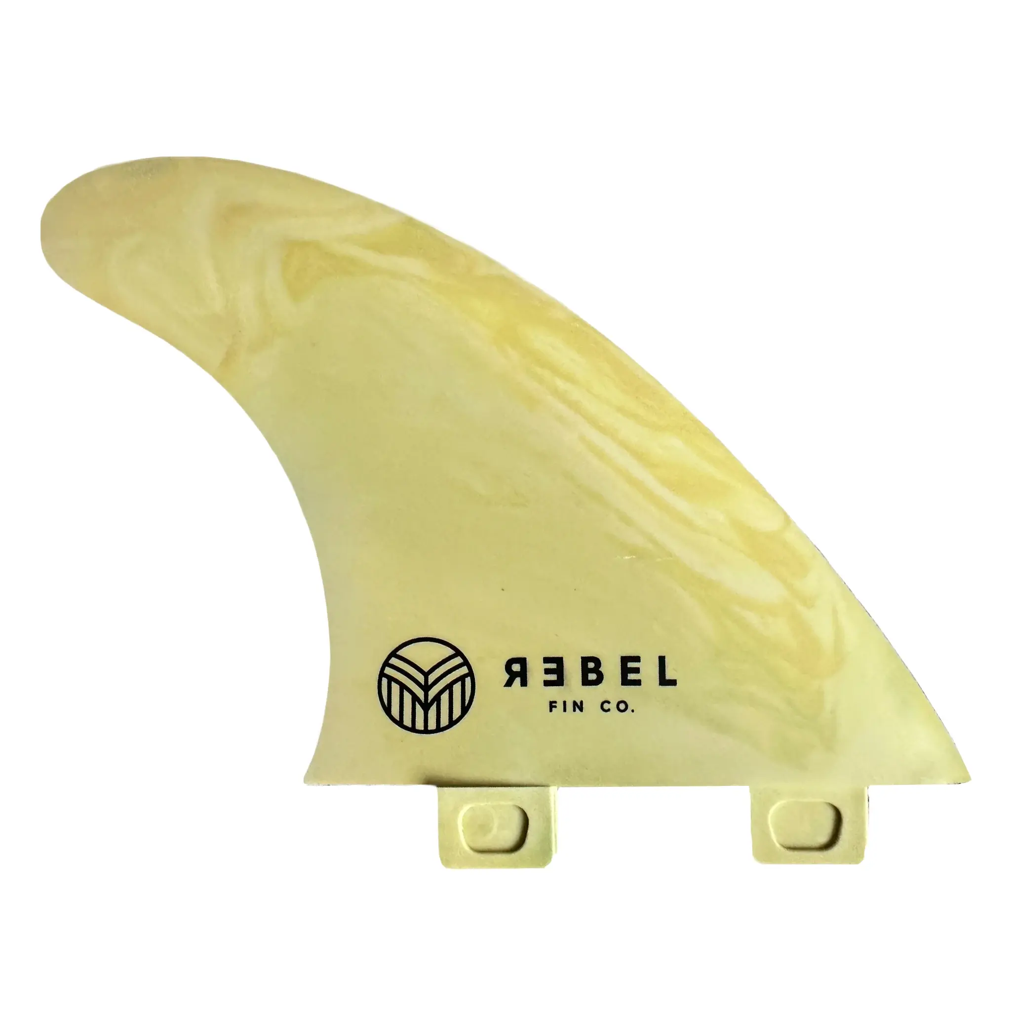 De nieuwe Marble fins collectie is gemaakt van 100% gerecycled met glasvezel versterkt materiaal. Door de wijze van productie is iedere set uniek en wijkt het kleurpatroon soms iets af van de foto. Dit is een FCS thruster set met basiskleur Unicorn!