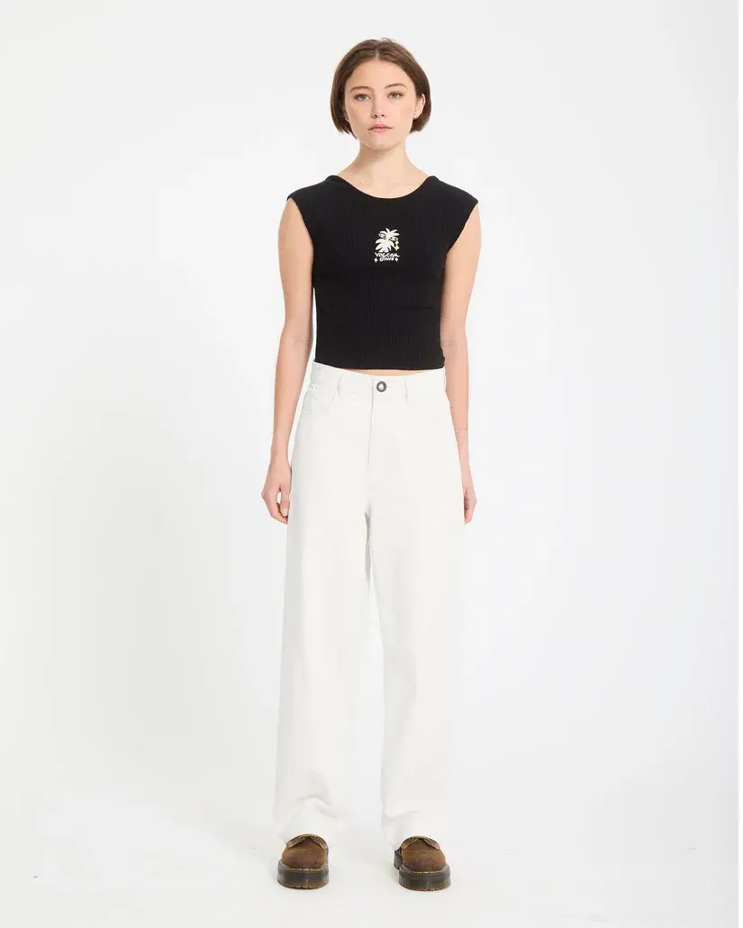 • These high-rise straight-leg jeans rock relaxed comfort in 100% cotton denim punctuated by Volcom script and stone embroidery.